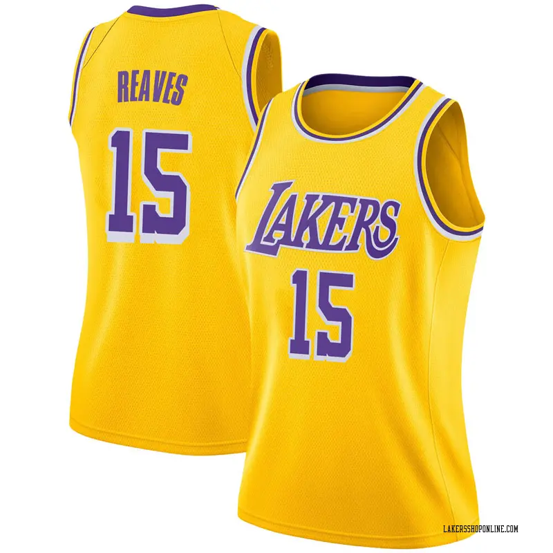 Get the perfect look to let everyone know you are a big Los Angeles Lakers fan! This Los Angeles Lakers Swingman Gold Austin Reaves 2018/19 Jersey - Icon Edition - Women's is ideal for wearing out and showing off your passion for the Los Angeles Lakers. It features authentic team colors and a unique design with Los Angeles Lakers and Austin Reaves graphics that will make you the envy of all your favorite team's faithful!