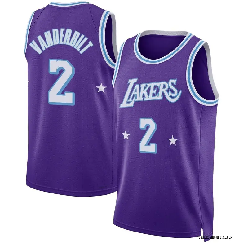 Get the perfect look to let everyone know you are a big Los Angeles Lakers fan! This Los Angeles Lakers Swingman Purple Jarred Vanderbilt 2021/22 City Edition Jersey - Men's is ideal for wearing out and showing off your passion for the Los Angeles Lakers. It features authentic team colors and a unique design with Los Angeles Lakers and Jarred Vanderbilt graphics that will make you the envy of all your favorite team's faithful!