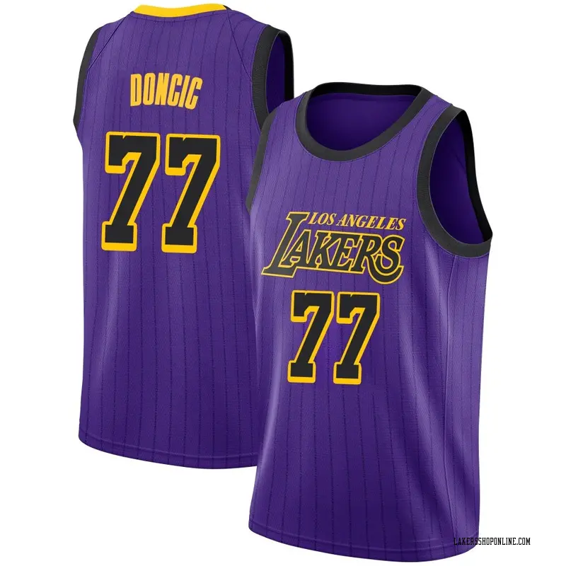 Get the perfect look to let everyone know you are a big Los Angeles Lakers fan! This Los Angeles Lakers Swingman Purple Luka Doncic 2018/19 Jersey - City Edition - Youth is ideal for wearing out and showing off your passion for the Los Angeles Lakers. It features authentic team colors and a unique design with Los Angeles Lakers and Luka Doncic graphics that will make you the envy of all your favorite team's faithful!