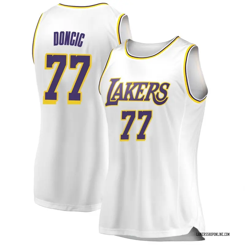 Get the perfect look to let everyone know you are a big Los Angeles Lakers fan! This Los Angeles Lakers Swingman White Luka Doncic 2018/19 Jersey - Association Edition - Women's is ideal for wearing out and showing off your passion for the Los Angeles Lakers. It features authentic team colors and a unique design with Los Angeles Lakers and Luka Doncic graphics that will make you the envy of all your favorite team's faithful!
