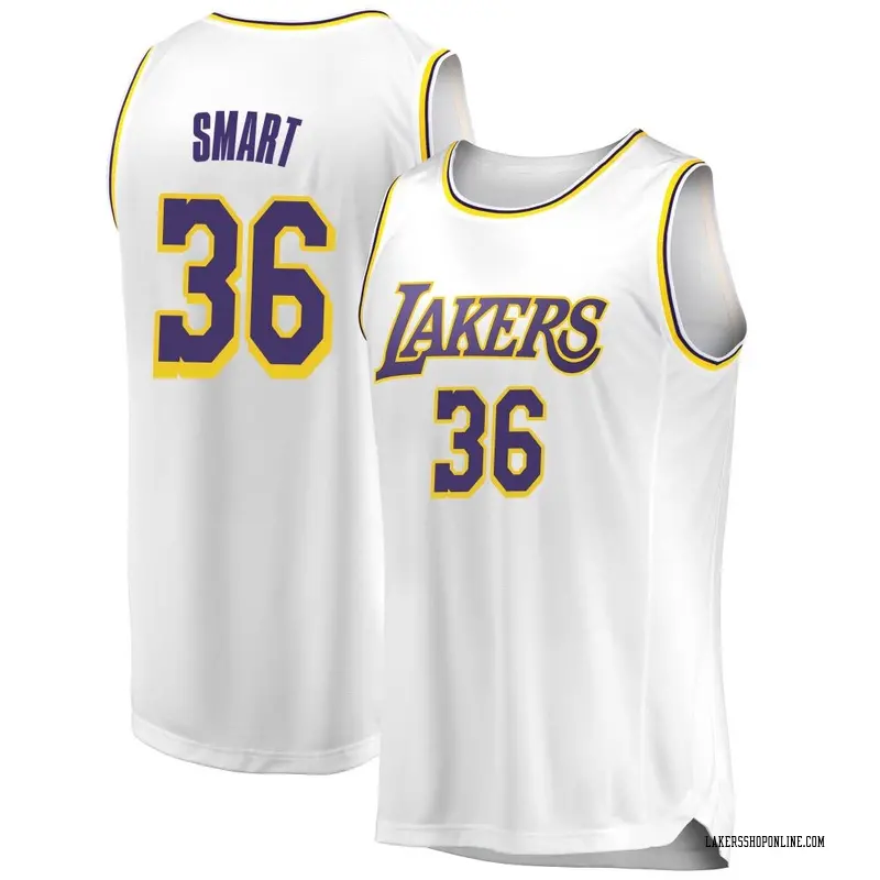 Get the perfect look to let everyone know you are a big Los Angeles Lakers fan! This Los Angeles Lakers Swingman White Marcus Smart 2018/19 Jersey - Association Edition - Youth is ideal for wearing out and showing off your passion for the Los Angeles Lakers. It features authentic team colors and a unique design with Los Angeles Lakers and Marcus Smart graphics that will make you the envy of all your favorite team's faithful!