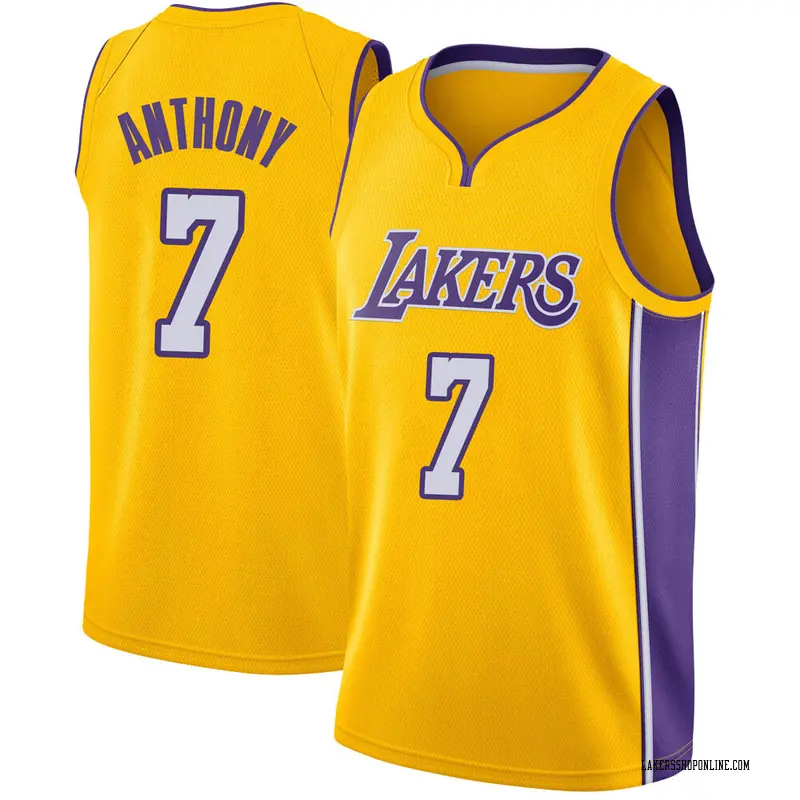 Get the perfect look to let everyone know you are a big Los Angeles Lakers fan! This Los Angeles Lakers Swingman Yellow Carmelo Anthony Jersey - Icon Edition - Youth is ideal for wearing out and showing off your passion for the Los Angeles Lakers. It features authentic team colors and a unique design with Los Angeles Lakers and Carmelo Anthony graphics that will make you the envy of all your favorite team's faithful!